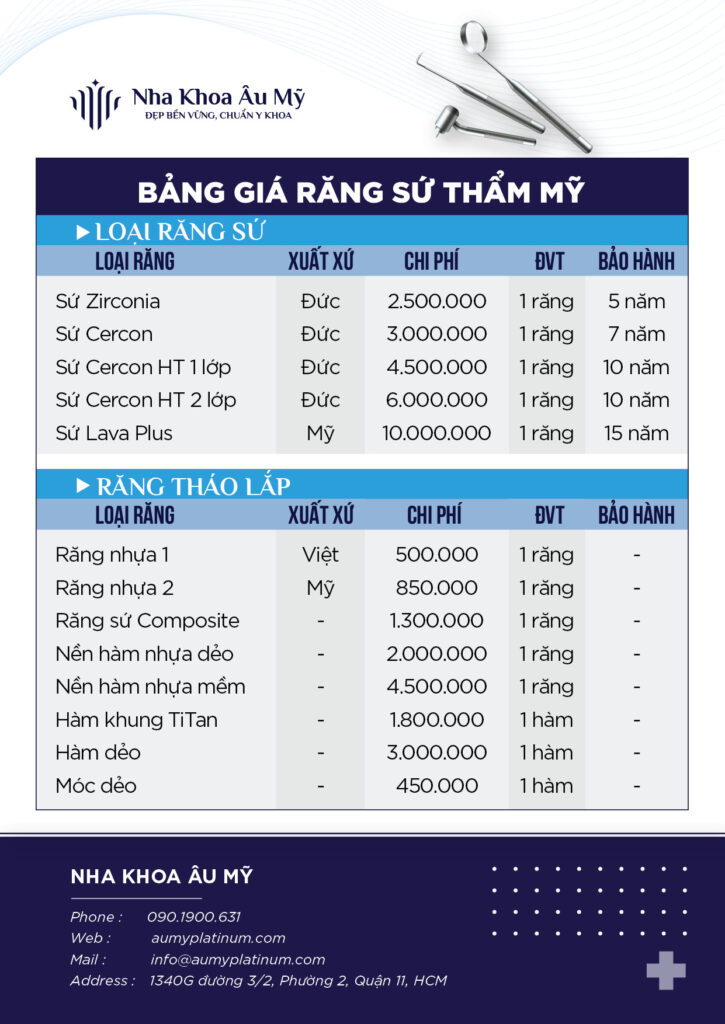 Hãy liên hệ với Âu Mỹ để được tư vấn và báo giá chính xác nhất về tình trạng răng của bạn nhé.